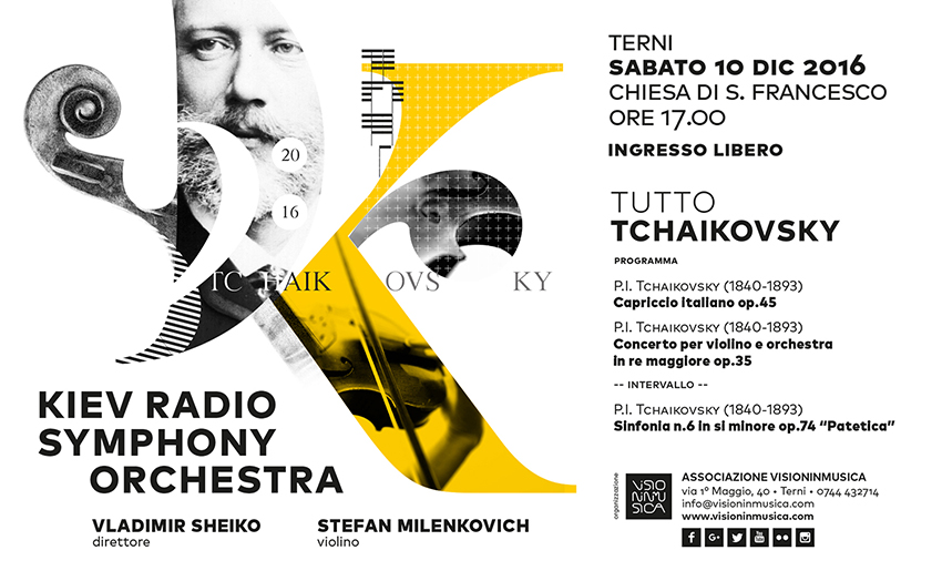 Sabato 10 dicembre 2016, alle ore 17, saranno l'Orchestra Sinfonica della Radio Nazionale di Kiev, diretta da Vladimir Sheiko e uno tra i più apprezzati violinisti contemporanei, Stefan Milenkovich, i protagonisti di un concerto che renderà omaggio a Pyotr Ilyich Tchaikovsky, autore le cui composizioni risultano tra le più note del repertorio classico. "Tutto Tchaikovsky" è il titolo scelto da Visioninmusica per un concerto che racchiude l'essenza di un compositore figlio del tardoromanticismo, di cui le sue opere sono incarnazione. Diretta da Vladimir Sheiko, suo direttore principale e direttore artistico dal 2005, l'Orchestra Sinfonica della Radio Nazionale di Kiev, con all'attivo oltre 85 anni di storia e grandi successi in tournée realizzate in tutto il mondo, eseguirà un repertorio dedicato al grande compositore russo. Ad affiancare l'Orchestra Sinfonica della Radio Nazionale Ucraina, il violinista Stefan Milenkovich. Talento precoce del panorama classico, Milenkovich inizia a suonare il violino a tre anni, a sei anni debutta per la prima volta da solista con l'orchestra e a soli nove anni si esibisce alla Casa Bianca di fronte al Presidente degli Stati Uniti Ronald Reagan dando così inizio a una carriera strabiliante.