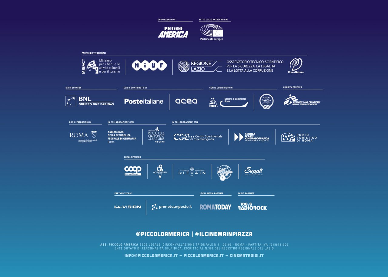 | Ottomiladuecento metri quadri di superficie dedicata ad attività culturali dove avranno luogo Centoquattro serate a ingresso gratuito in sessanta giorni, di cui ventinove alla presenza di ospiti, tra cui anche sei incontri con ospiti internazionali. Tremila posti a sedere nelle tre piazze coinvolte, in cui saranno impiegati quaranta ragazzi, quaranta collaboratori tra service e consulenti e venti ragazzi volontari. Sono questi i numeri della sesta edizione de "Il Cinema in Piazza", che nell'arco della stagione vedrà l'arrivo da Varsavia, Los Angeles, Parigi, Amburgo e Berlino di ospiti come il Premio Oscar Pawel Pawlikowski che presenterà "Cold War", Tony Kaye regista di "American History X", l'attrice Audrey Tautou con il regista e attore Mathieu Kassovitz per "Il Favoloso Mondo di Amélie" e "L'ordre et la morale", titolo mai distribuito nelle sale italiane, a cui seguono i registi tedeschi Jan-Ole Gerster che ha di recente presentato "M" di Fritz Lang e Dennis Gansel che invece introdurrà "L'onda". Insieme a personalità italiane come Claudio Amendola, Francesca Archibugi, Gianluca Arcopinto, Lello Arena, Claudio Bigagli, Francesco Bruni, Andrea Carpenzano, Arnaldo Catinari, Daniele Cini, Paola Cortellesi, Leonardo D'agostini, Lorenzo De Massimo, Diodato, Sabrina Ferilli, Agostino Ferrente, Fabrizio Fichera, Massimo Ghini, Matilde Gioli, Chiara Martegiani, Angela Massafra, Valerio Mastandrea, Valerio Mieli, Riccardo Milani, Giuliano Montaldo, Susanna Nicchiarelli, Riccardo Noury, Roy Paci, Rocco Papaleo, Francesco Piccolo, Leandro Piccioni, Michele Placido, Isabella Ragonese, Paola Randi, Desideria Rayner, Michele Riondino, Marco Risi, Andrea Sartoretti, Giorgio Testi, Alessandro Tiberi, Luca Vendruscolo, Carlo Verdone, Giovanni Veronesi, Carlo Virzì, Paolo Virzì, Francesco Zippel, Matteo Zuppi Vescovo di Bologna. "Il Cinema in Piazza", iniziativa organizzata dal Piccolo America con il sostegno di Mibact, Miur e Regione Lazio e di BNL gruppo BNP Paribas, main sponsor storico dell'evento, reso possibile anche grazie al contributo di Poste Italiane, Acea, Asilo Savoia e Camera di Commercio di Roma, ha riaperto per prima le porte d'Italia ad ospiti internazionali e a decine di registi, attori e maestranze della settima arte italiana. L'edizione 2020 de "Il Cinema in Piazza" si presenta diversa dalle altre: la sicurezza di pubblico, ospiti e personale è una priorità assoluta per il Piccolo America, pertanto nell'organizzare la manifestazione l'associazione ha seguito attentamente i protocolli stabiliti adempiendo a tutte le misure anti-Covid 19. L'ingresso sarà dunque consentito solo su prenotazione obbligatoria, tramite registrazione su www.prenotaunposto.it/ilcinemainpiazza, su cui sarà possibile prenotare la propria "piazzola" e partecipare alle serate con cuscini, teli e sedute portati da casa. Per approfondire il tema delle prenotazioni e delle misure anti-coronavirus, è disponibile un apposito articolo di domande e risposte. Tutti i titoli in programma saranno proiettati alle 21.15 in versione originale con sottotitoli in italiano, ad esclusione dei titoli dedicati ai bambini, come i classici Disney. RINGRAZIAMENTI Il primo ringraziamento va al Presidente del Parlamento Europeo David Maria Sassoli per aver deciso di accordare l'Alto Patrocinio del Parlamento Europeo all'iniziativa. Si ringraziano inoltre per il sostegno il Ministero per i Beni e le Attività Culturali e il Turismo, guidato da Dario Franceschini e il Ministero dell'Istruzione, guidato da Lucia Azzolina. Per la Regione Lazio, partner istituzionale storico della manifestazione, si ringraziano il Presidente Nicola Zingaretti e tutti i suoi collaboratori, il capo di gabinetto Albino Ruberti e il suo staff, il Presidente di RomaNatura, Maurizio Gubbiotti e il direttore Emiliano Manari. Per l'Osservatorio per la Legalità e per la Sicurezza della Regione Lazio, il presidente Gianpiero Cioffredi. La Regione Lazio, guidata da Nicola Zingaretti, ha dato fiducia a questa esperienza dal principio, senza mai prevaricarla, ma anzi valorizzandola e mettendosi a disposizione per accrescerne le potenzialità e aiutarla a raggiungere gli obiettivi. Presenza fondamentale, anche in questa stagione, da parte della Presidente del Municipio I Sabrina Alfonsi che si ringrazia per l'attenzione e la disponibilità, nonché per il patrocinio rilasciato. Si ringrazia inoltre il Vicesindaco con delega alla Crescita Culturale Luca Bergamo, che per conto di Roma Capitale ha patrocinato la manifestazione e messo al servizio anch'egli gli strumenti necessari per riportare il cinema nelle piazze di Roma. Il contributo di BNL Gruppo BNP Paribas, main sponsor della manifestazione, conferma l'impegno della banca nel voler contribuire allo sviluppo e alla creatività delle giovani generazioni e la sua capacità di dialogare con le esperienze più varie, anche spontanee. Il rapporto con BNL Gruppo BNP Paribas dimostra ancora una volta che un dialogo con le istituzioni è possibile: c'è chi ascolta, comprende, tutela e sostiene le risorse sociali che si organizzano spontaneamente nei territori, garantendo loro libertà e indipendenza. Altresì la manifestazione non sarebbe stata possibile senza il contributo di Poste Italiane e Acea spa, nonché della Camera di Commercio di Roma, da sempre vicina alle attività del Piccolo America, che ha negli anni garantito anche un indotto economico nei territori d'intervento. Prosegue inoltre la collaborazione con l'Asilo Savoia, impegnato a Ostia nella gestione della Palestra della Legalità, con i medesimi obiettivi del Piccolo America: promuovere servizi gratuiti alle fasce meno abbienti della nostra città, coinvolgendole non in una mera fruizione culturale o sociale, ma rendendole protagoniste. Si ringrazia per questa preziosa opportunità il Presidente Massimiliano Monnanni. Un ringraziamento speciale va, inoltre, a tutti gli ospiti per il prezioso sostegno che ci hanno confermato impegnandosi a pa